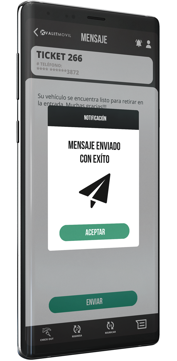 El usuario le proporciona al valet su número de teléfono móvil cuando deja su vehículo.