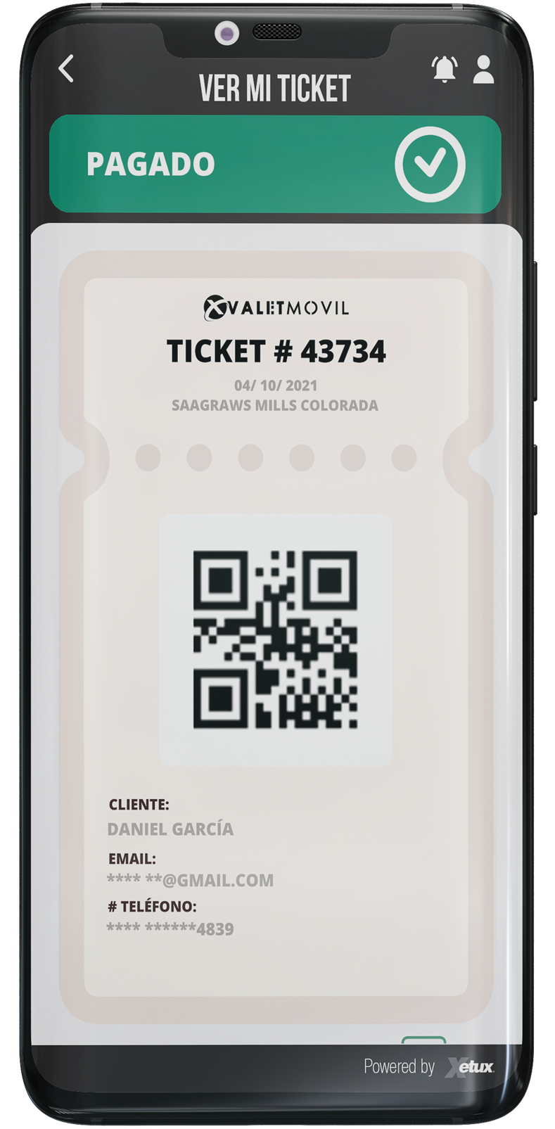 El usuario presenta el ticket digital al valet para retirar su vehículo.